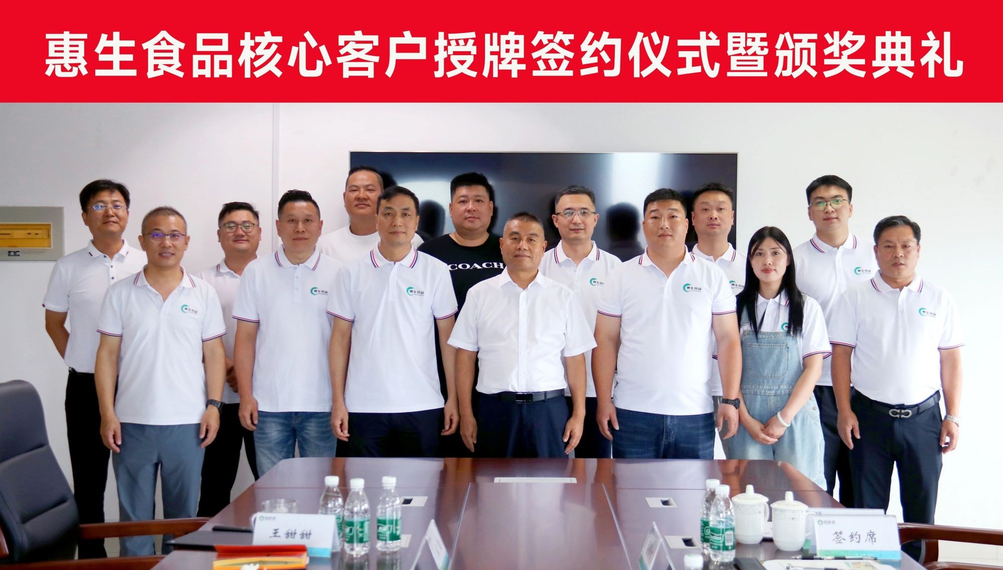 共创新机遇,共谋新发展。惠生食品今天的阔步前行,离不开广大客户及合作伙伴的助力,交流会上,惠生食品在集团领导及各位客户代表的见证下,举行了核心客户的颁奖及授牌仪式,同时,新晋客户现场也进行了的签约及授权。