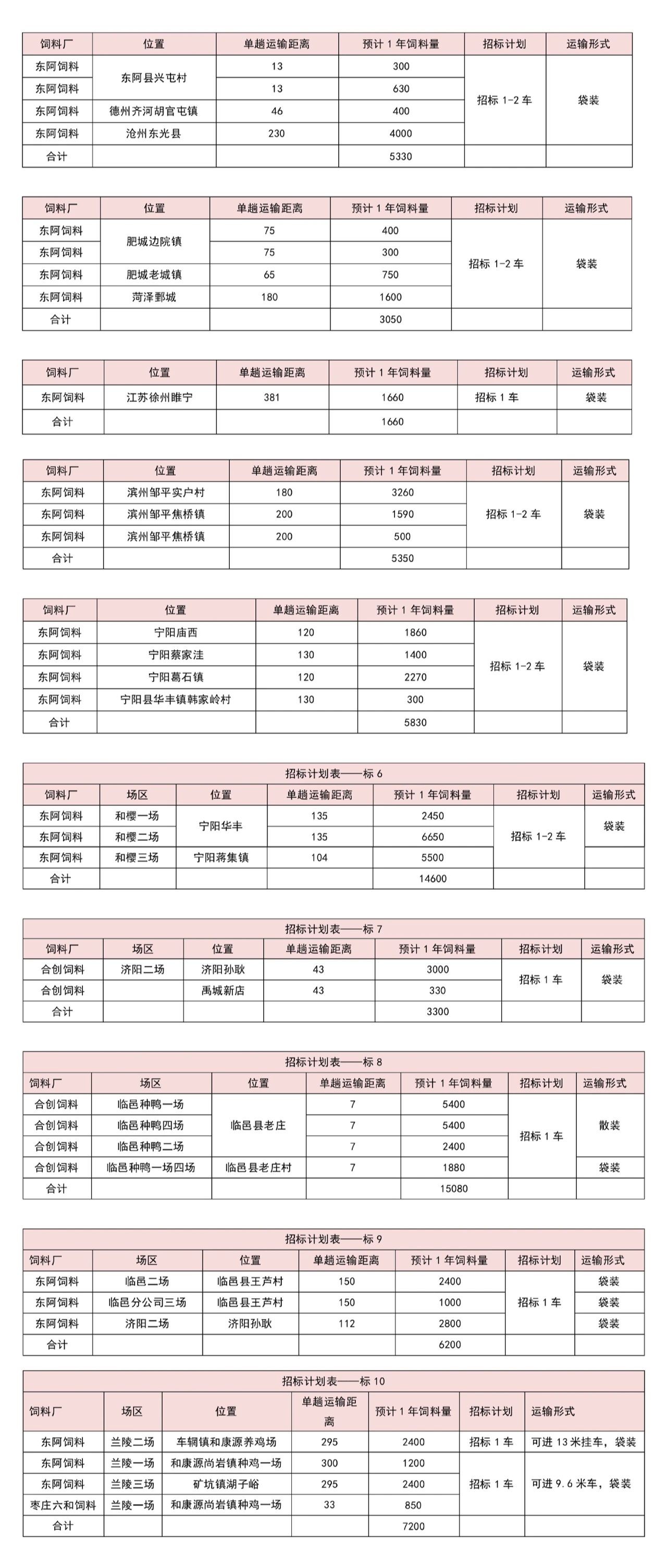 2、投标报价单,包括运输单价等。